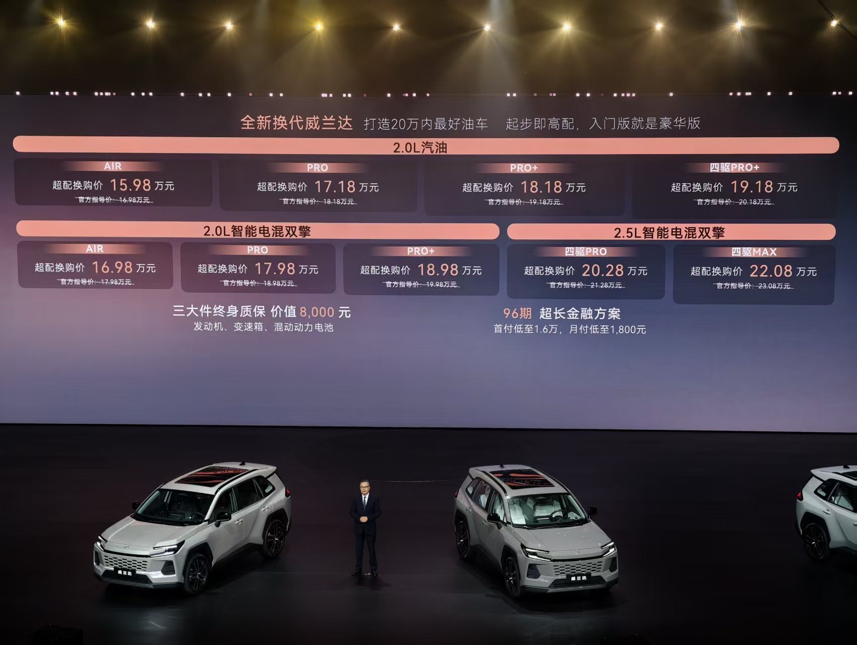 11月20日,在2025廣州國際車展開幕前,廣汽豐田帶來全新?lián)Q代威蘭達(dá),率先開啟“預(yù)熱”。本次新車在上一代2.5L混動(dòng)版基礎(chǔ)上新增2.0L混動(dòng)版本,共推出三款車型,售價(jià)15.98萬—20.28萬元,不僅把中型SUV混動(dòng)版價(jià)格拉進(jìn)20萬元內(nèi)區(qū)間,更依托全系產(chǎn)品技術(shù)實(shí)力的大幅躍升,致力于成為“20萬元內(nèi)最好的油車”