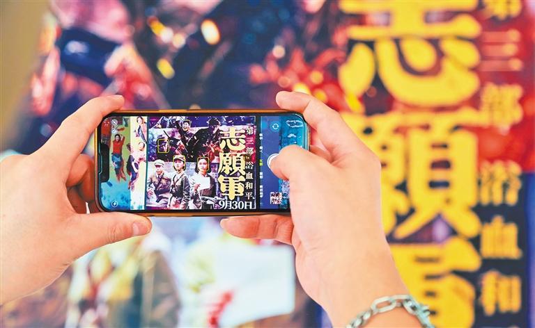 10月7日,觀眾在云南省蒙自市一電影院內(nèi)拍攝電影《志愿軍》海報。截至10月2日,2025年電影總票房突破425.02億元?,超2024年全年總票房。薛瑩瑩攝(中經(jīng)視覺)