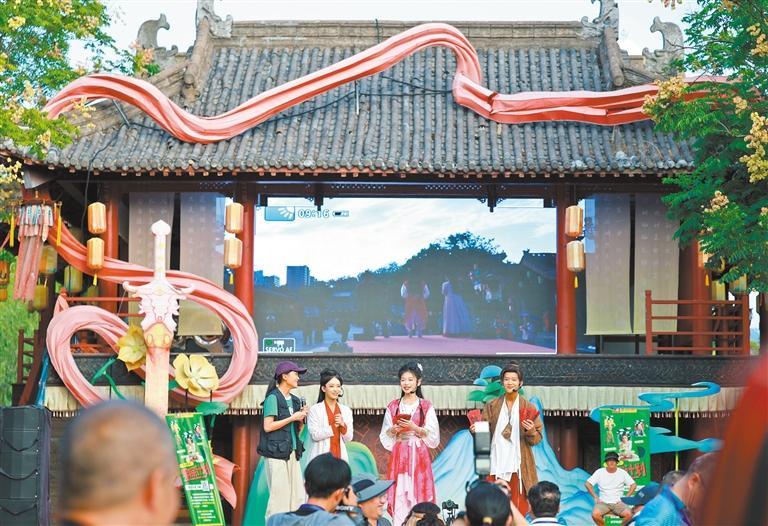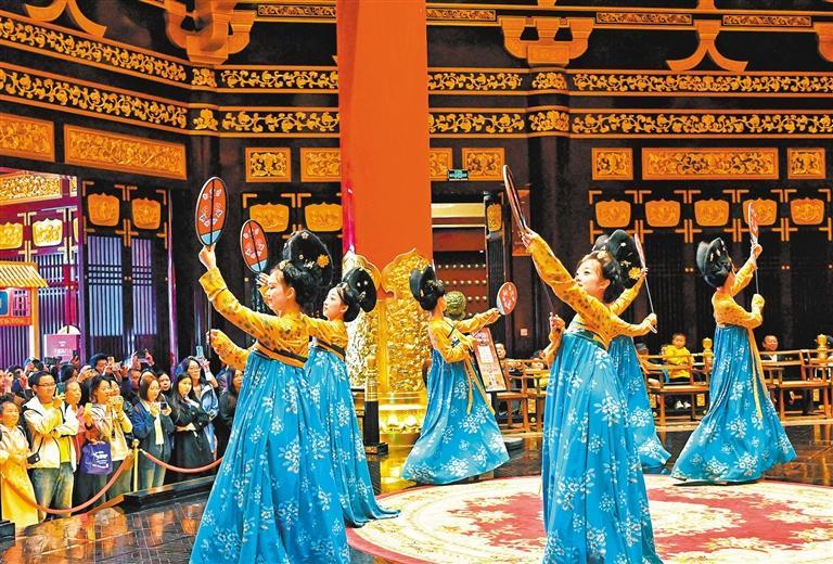 10月11日,游客在河南省洛陽市隋唐洛陽城欣賞古風(fēng)舞蹈表演。張光輝攝(中經(jīng)視覺)