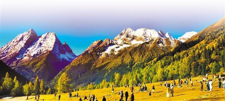 10月22日,四川省阿壩藏族羌族自治州小金縣境內(nèi)的雙橋溝,秋景如畫,吸引眾多游客。 田文國攝(中經(jīng)視覺)