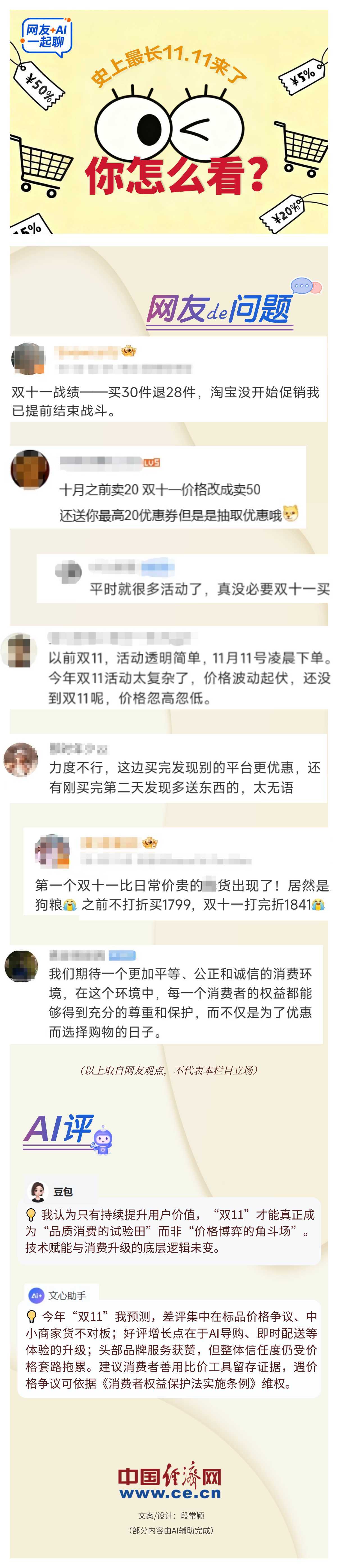 今年的“雙11”,比以往來的更早一些。按以往各方網(wǎng)友經(jīng)驗,有人真喜,有人真愁。今年很多平臺提前至10月上旬就啟動了“雙11”的大促,周期普遍超過30天。對于史上最長的“雙11”,你會“入局“嗎?AI工具如何分析?