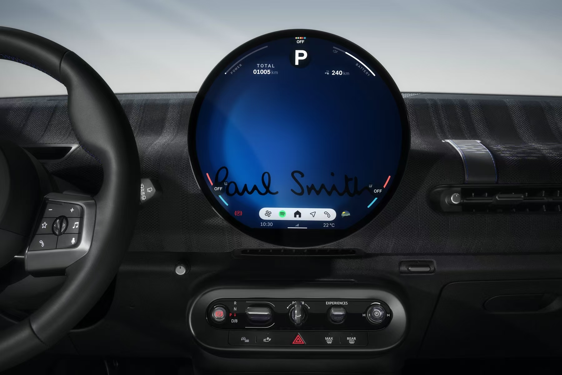 MINI行業(yè)首創(chuàng)OLED 圓屏在個性化模式下,也新增了三種不同的Paul Smith專屬背景,“表面克制,內(nèi)心叛逆”的審美風(fēng)格進(jìn)一步在數(shù)字化交互體驗(yàn)得到演繹。