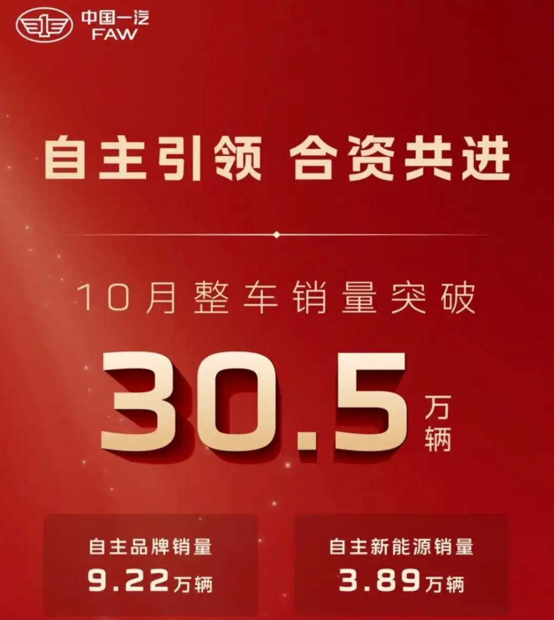 首先是在市場全面轉(zhuǎn)向新能源的大環(huán)境下,轉(zhuǎn)型不利的一汽集團(tuán)急需打開突破口。2024年,一汽集團(tuán)自主乘用車品牌紅旗和奔騰合計(jì)售出新能源車不足20萬輛,占集團(tuán)整體銷量僅6%出頭;今年1—10月,一汽集團(tuán)自主新能源累計(jì)銷量為28.61萬輛,占比也剛過10%。